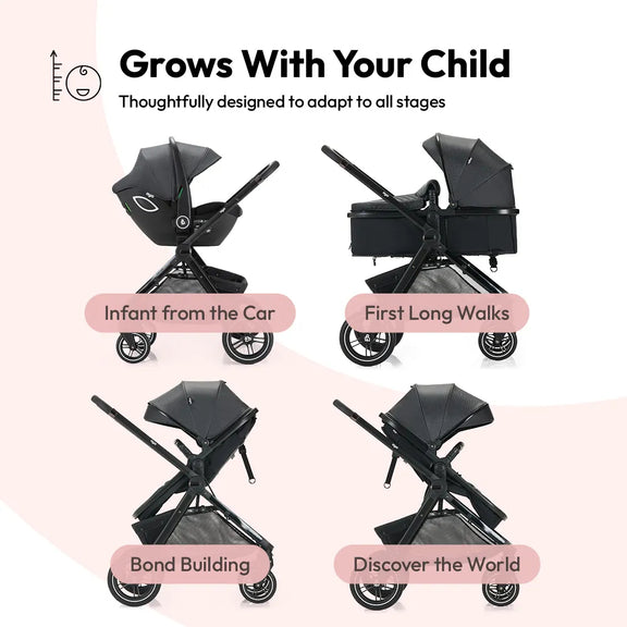 The Aya EasyMoov is a multifunctional 3-in-1 travel system designed to support everyday life with your child from the early months through toddlerhood. Combining a 2-in-1 pushchair with the Aya EasyGo infant car seat and included adapters, it offers flexibility, comfort, and convenience for families who want a complete solution from day one.